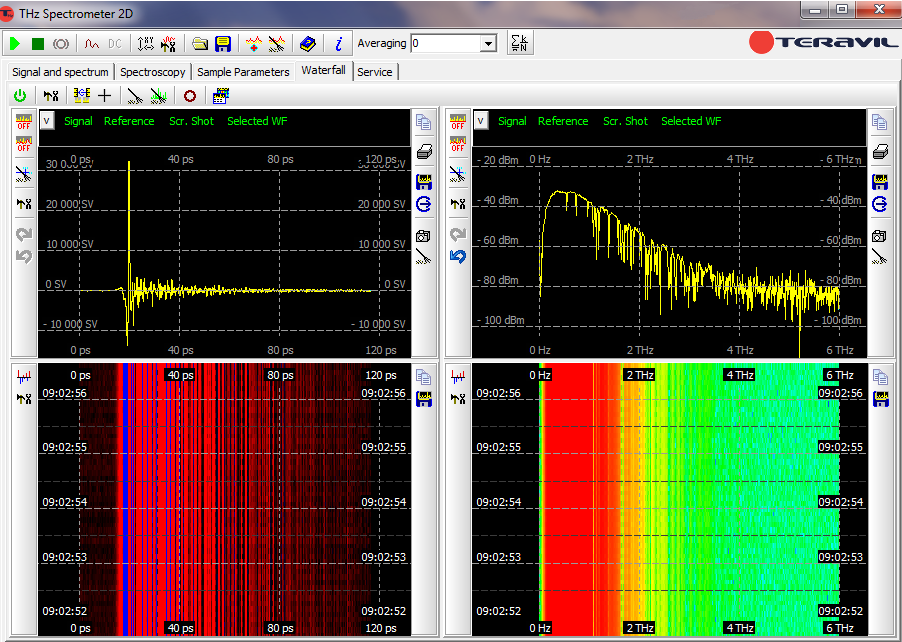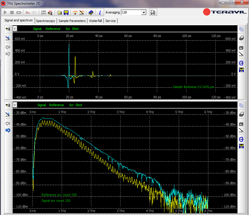 - register THz signal, get FFT spectrum, absorbance and transmittance in real time (10 scans/s);