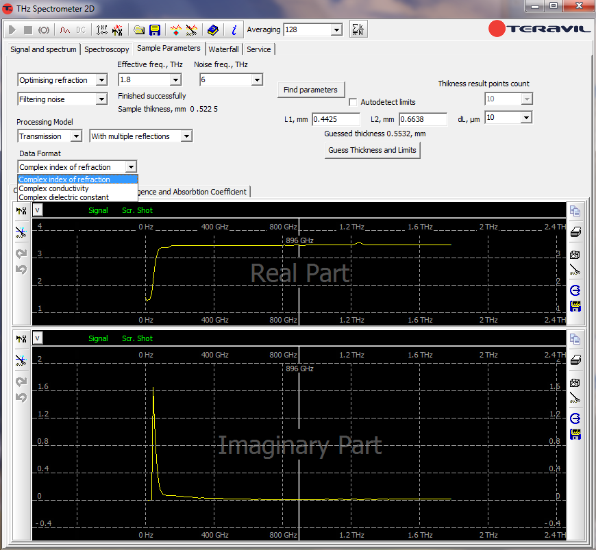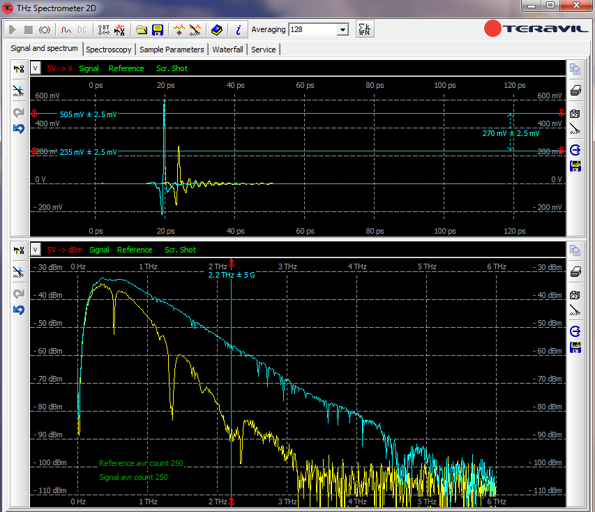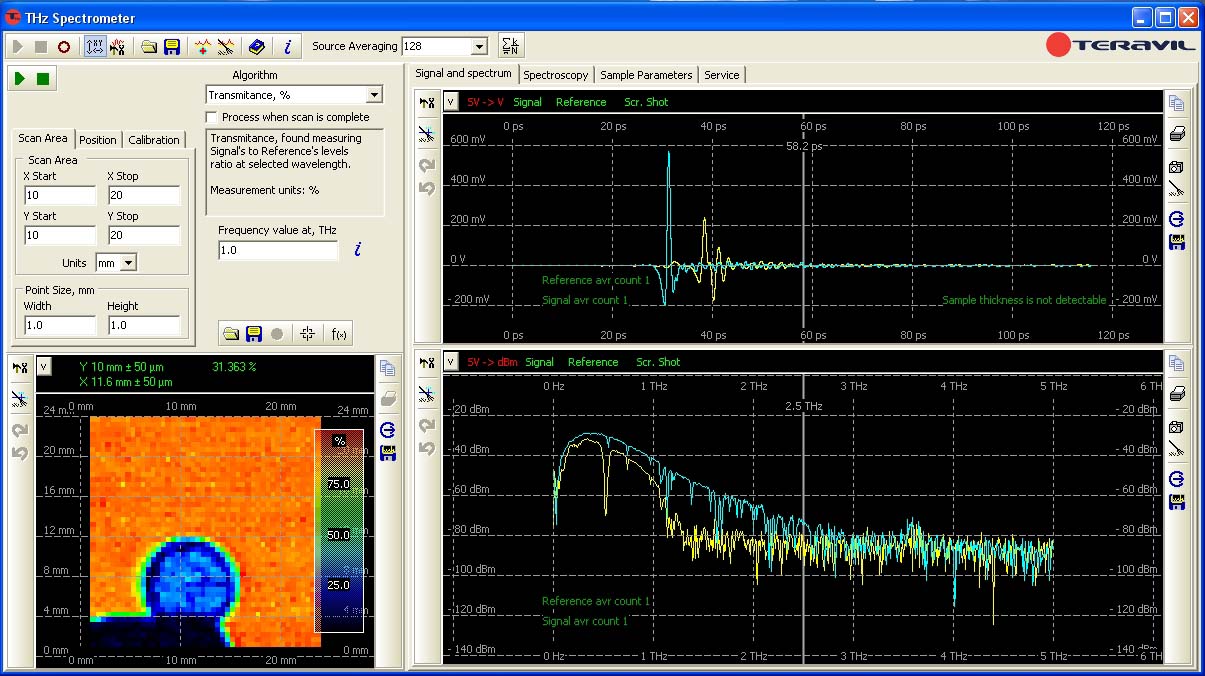 - register THz signal, get FFT spectrum, absorbance and transmittance in real time (10 scans/s);